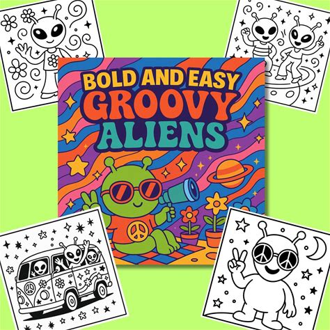 Groovy Alien Coloring Book: Retro Kawaii Art, Fun For All Ages (PDF Download)