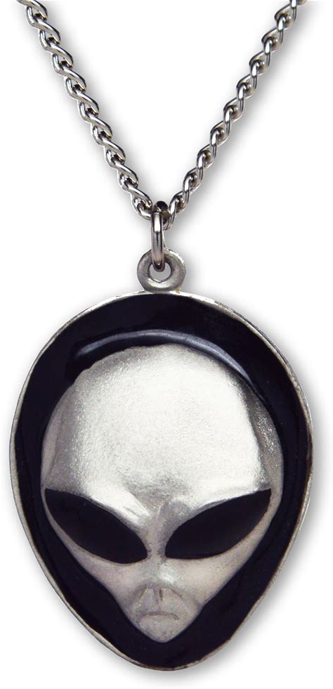 UFO Roswell Alien Head With Black Enamel Eyes Pendant Necklace NK-249B