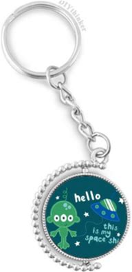Universe And Alien Hello Alien Rotatable Keyholder Disc Accessories Chain Clip
